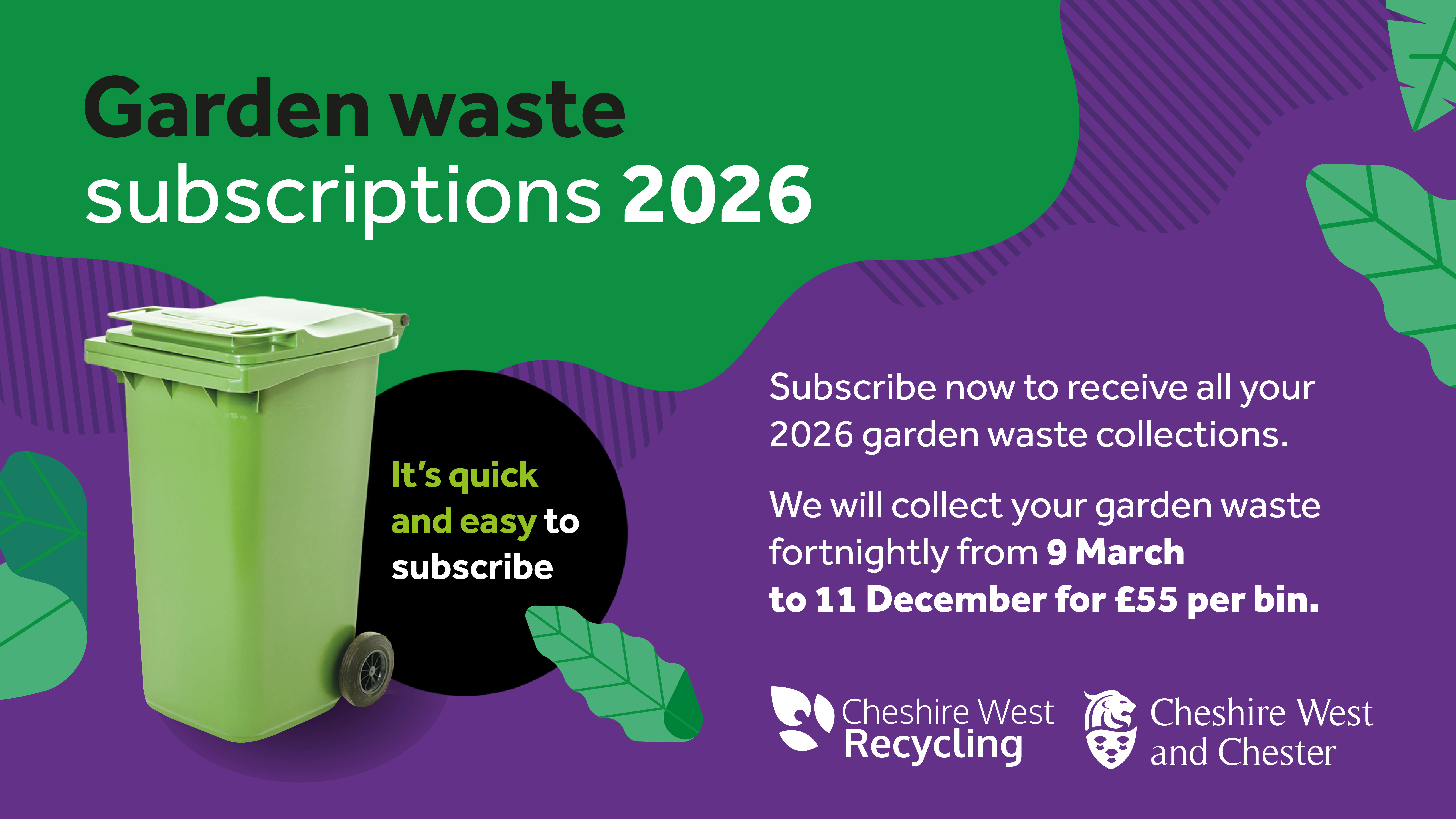 Residents can now subscribe for 2026 garden waste collections